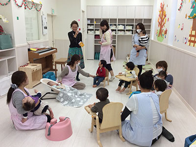 脳がスポンジのように柔らかく吸収する1,2歳児には、フォニックスとリトミック(Phonics & Rhythmics)で構成されたプログラムを五感を刺激しながらていねいにステップを踏み、自然な形で体に入れていきます。